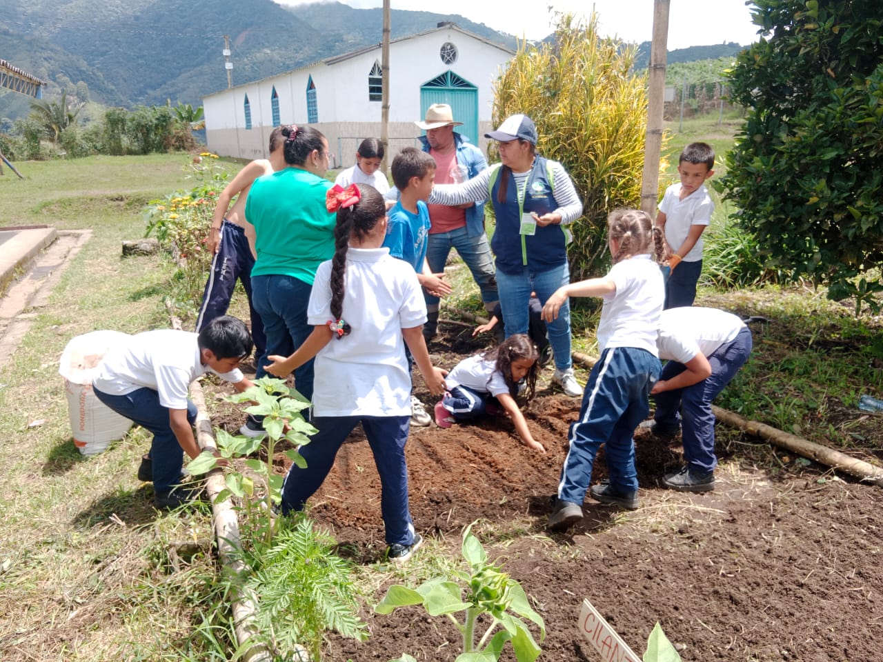En février, une équipe de sept bénévoles – enseignants français résidant en Colombie-, menée par Anaïs et Olivia, s’est rendue sur place pour célébrer les trente ans de l’association à travers l’organisation d’ateliers de découverte : macramé, fabrication de carnets, initiation au rugby pour les plus jeunes…. Leur venue a été accueillie avec enthousiasme par les enfants, leurs familles et leurs enseignantes. Les enfants ont expliqué les techniques de culture apprises au cours des ateliers organisés par Corpocam et présenté leurs récoltes, tandis que les enseignantes ont décrit le travail pédagogique mis en place autour des potagers.
